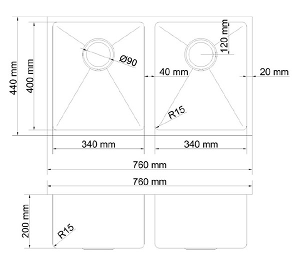 Atlas Double Square Under Mount Sink