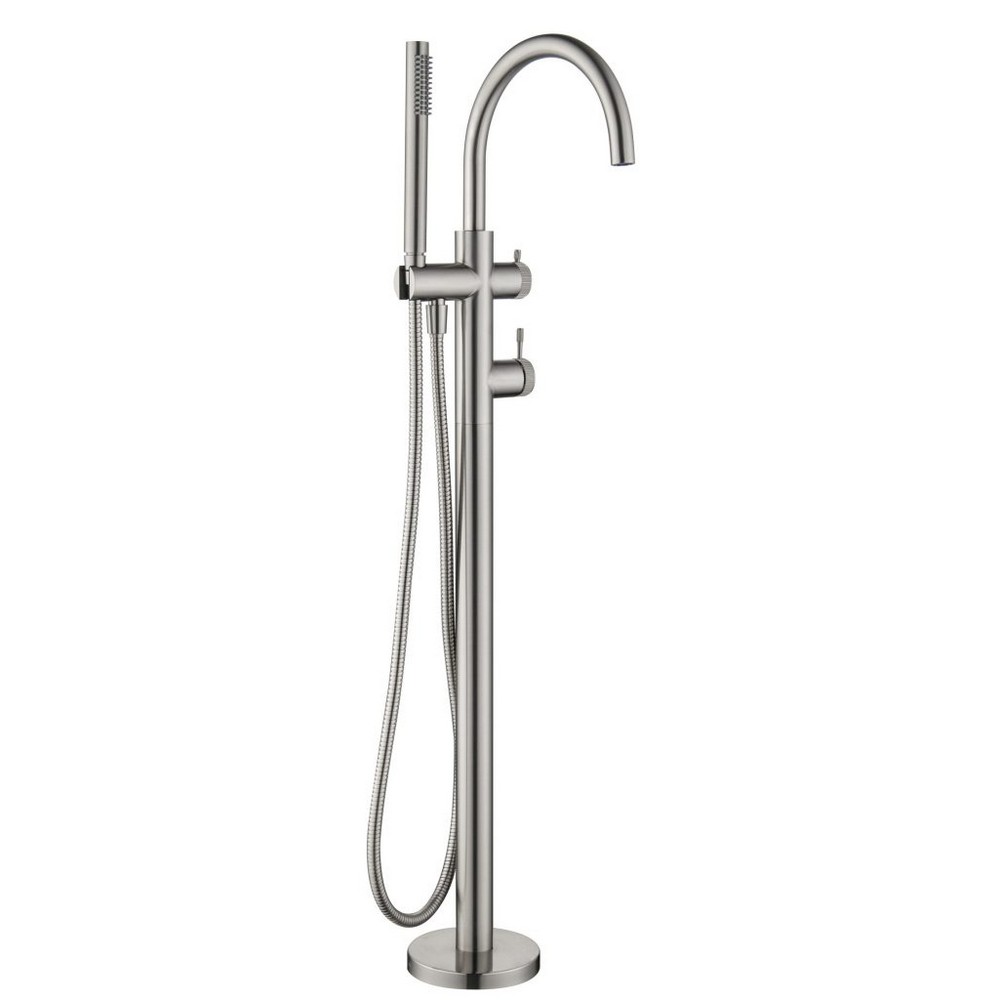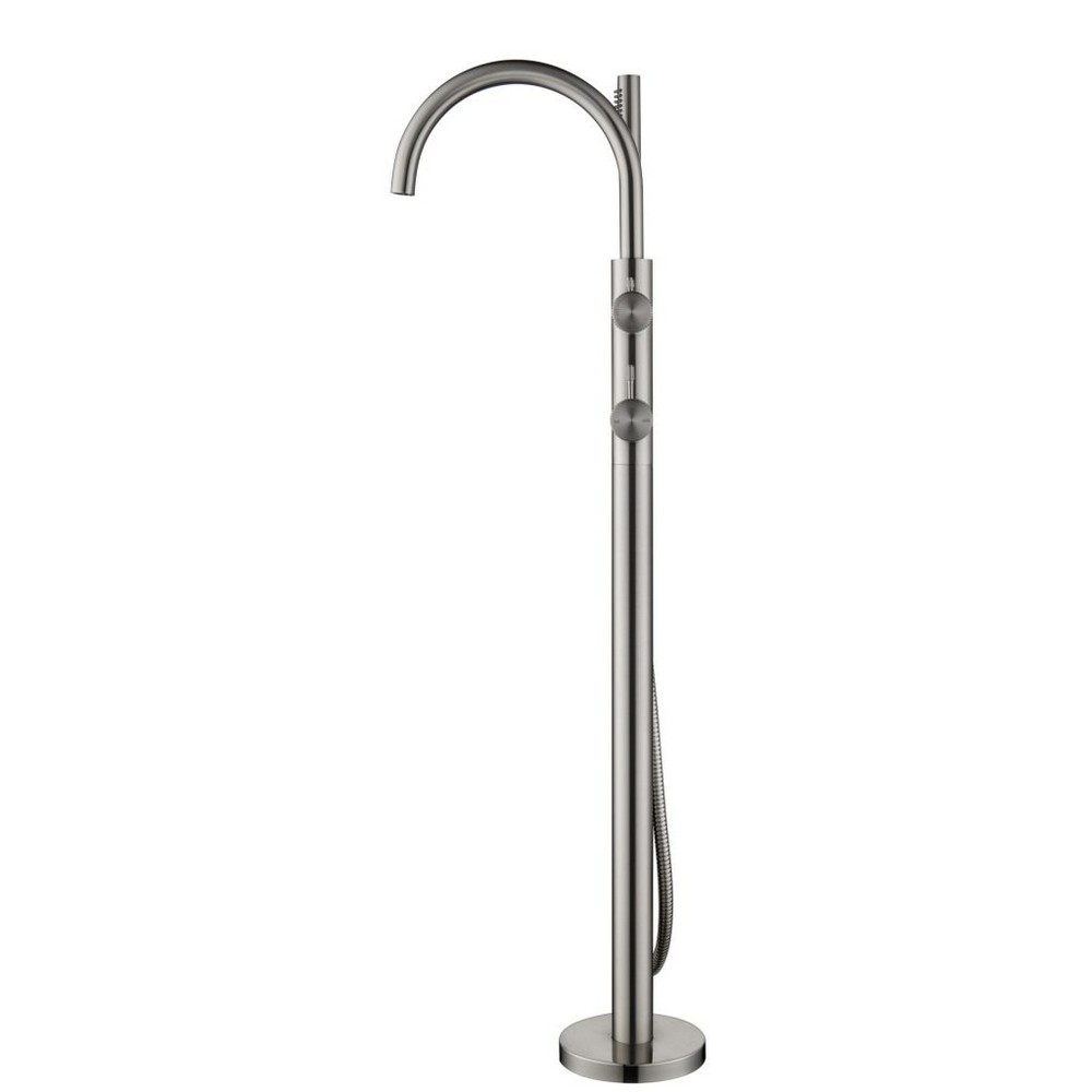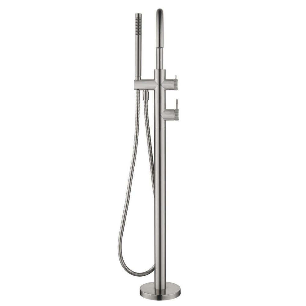 Mica Fluted Freestanding Bath Mixer with Hand Shower - Brushed Nickel